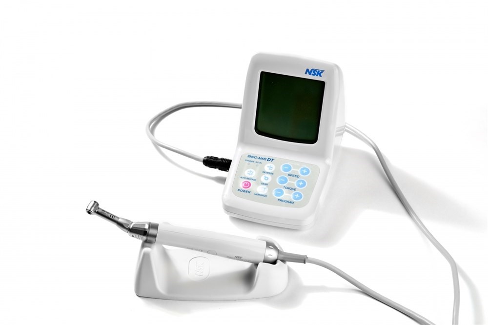 Эндомотор ENDO-MATE DT от международного бренда NSK — интеллектуальный прибор, точно запоминающий настройки скорости и крутящего момента для 9 программ для Ni-Ti файлов.