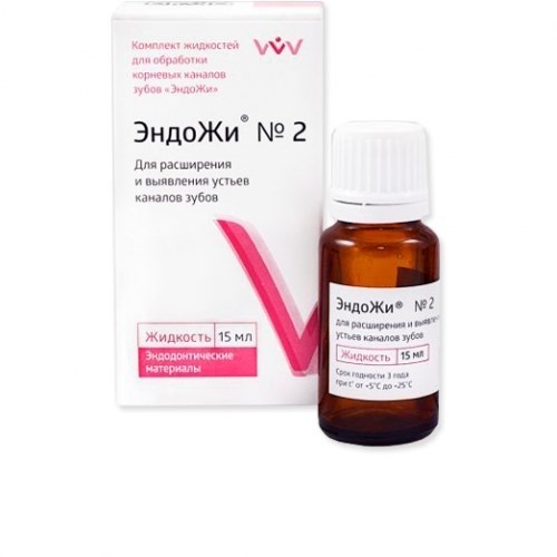 Описание: Эндожи №2 для расширения каналов на основе ЭДТА (15мл) ВладМиВа«ЭНДОЖИ №2» - для выявления устья каналов и их расширения, содержит смесь калиевой и натриевой солей ЭДТА (17%) и центимониум бромид – поверхностно-активный антисептик, обеспечивающий пенообразование, быстрое проникновение препарата в микроканальца и предотвращающий оседание дентинных опилок, что облегчает их извлечение из канала.