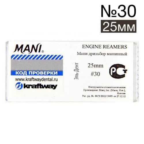 Описание: Engine reamers №30 - 25 мм (6 шт.), MANIMani Engine Reamers - Машинный режущий стоматологический эндодонтический инструмент со спиральной нарезкой рабочей части. Материал рабочей режущей части - нержавеющая сталь, материал хвостовика – нержавеющая сталь. Шаг режущих граней увеличен, что повышает режущую способность.
