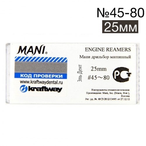 Описание: Engine reamers №45-80 - 25мм (6 шт.), MANIMani Engine Reamers - Машинный режущий стоматологический эндодонтический инструмент со спиральной нарезкой рабочей части. Материал рабочей режущей части - нержавеющая сталь, материал хвостовика – нержавеющая сталь. Шаг режущих граней увеличен, что повышает режущую способность.
