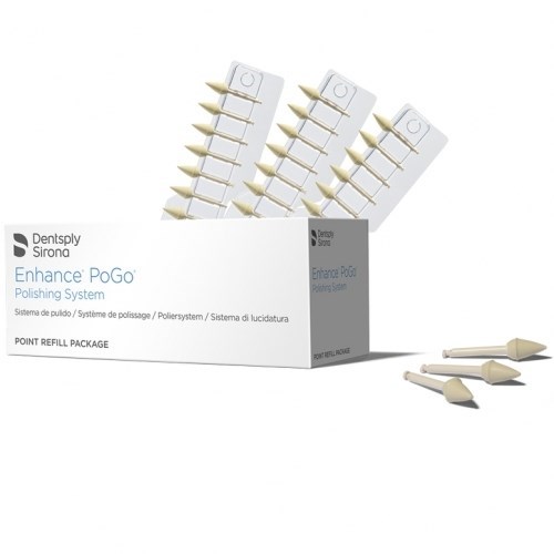 PoGo (Пого) - это полировочная система из полимеризованной уретандиметакрилатной смолы, импрегнированной алмазной крошкой, зафиксированные на держателе.