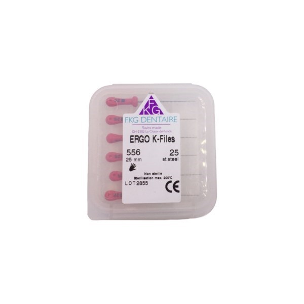 Ручные эндодонтические файлы изготовлены из стали или NiTi стандартных ISO размеров от 6 до 40, имеют неактивный безопасный кончик, который является эксклюзивной разработкой компании FKG, и эргономичную ручку — (SMG). Эргономичную ручку удобнее держать, благодаря увеличенному диаметру. На конце ручки расположен 8-сегментный индикатор кратности использования. После каждого применения