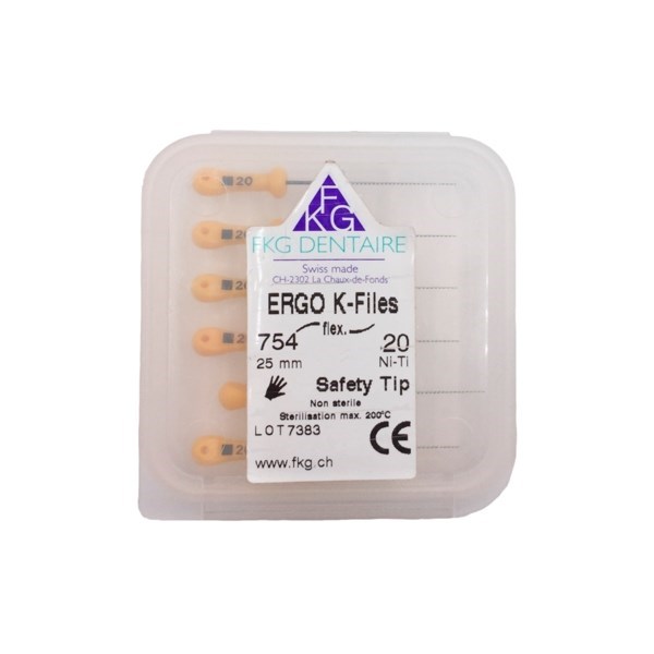 Ручные эндодонтические файлы изготовлены из стали или NiTi стандартных ISO размеров от 6 до 40, имеют неактивный безопасный кончик, который является эксклюзивной разработкой компании FKG, и эргономичную ручку — (SMG). Эргономичную ручку удобнее держать, благодаря увеличенному диаметру. На конце ручки расположен 8-сегментный индикатор кратности использования. После каждого применения