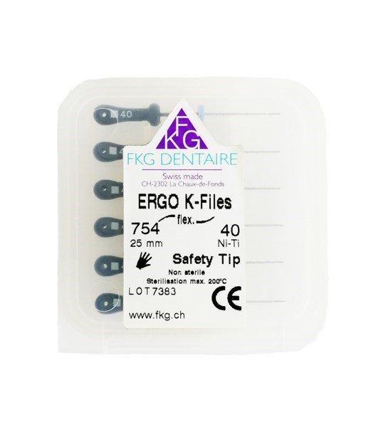 Ручные эндодонтические файлы изготовлены из стали или NiTi стандартных ISO размеров от 6 до 40, имеют неактивный безопасный кончик, который является эксклюзивной разработкой компании FKG, и эргономичную ручку — (SMG). Эргономичную ручку удобнее держать, благодаря увеличенному диаметру. На конце ручки расположен 8-сегментный индикатор кратности использования. После каждого применения