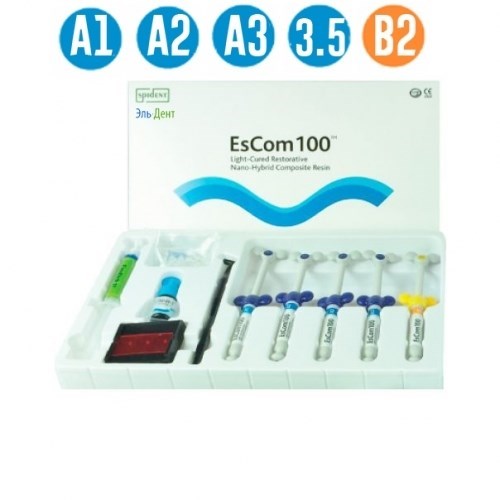 Описание: EsCom 100-малый набор (5шпр.) световой композит, SpidentEsCom 100 - материал стоматологический пломбировочный.