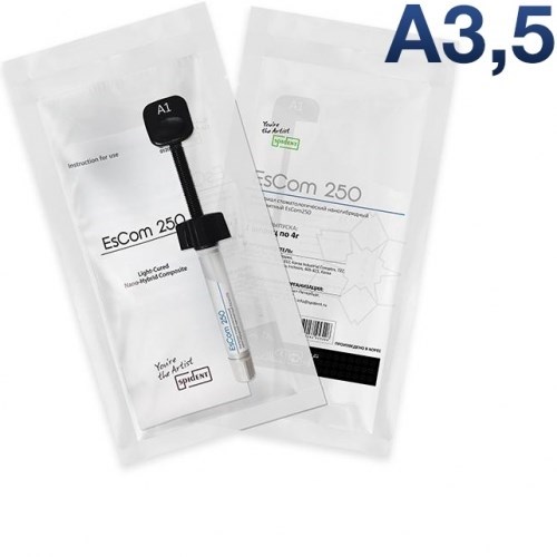 Описание: EsCom 250 A3.5, шприц 4г-наногибридный композит с диоксидом циркония, SpidentНаногибридный композит с диоксидом циркония EsCom 250 цвет A3,5, Spident.
