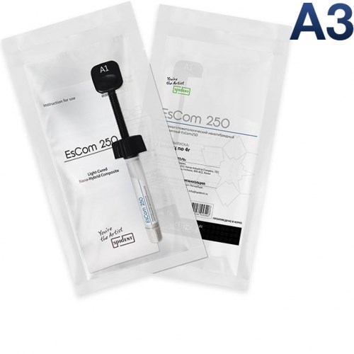 Описание: EsCom 250 A3, шприц 4г-наногибридный композит с диоксидом циркония, SpidentНаногибридный композит с диоксидом циркония EsCom 250 цвет A3, Spident.
