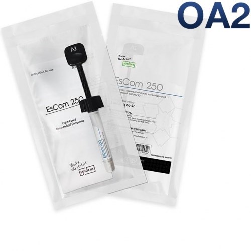 Описание: EsCom 250 OA2, шприц 4г-наногибридный композит с диоксидом циркония, SpidentНаногибридный композит с диоксидом циркония EsCom 250 цвет OA2, Spident.