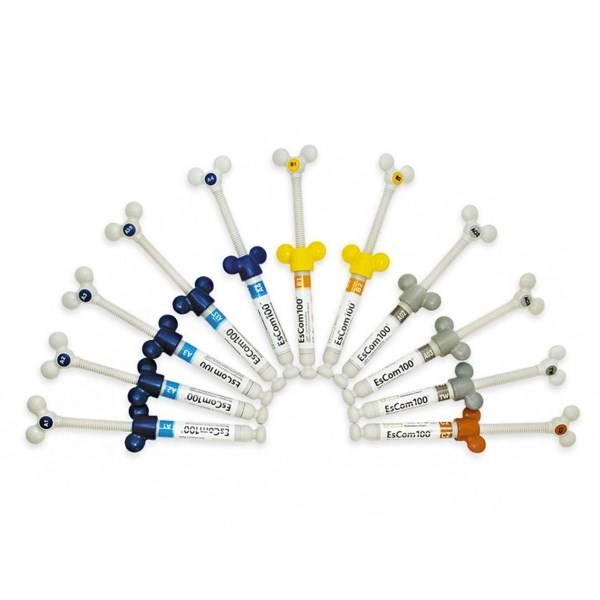 EsCom 100 — Наногибридный, светополимеризующийся композит, подходящий для всех полостей фронтальных и боковых зубов.