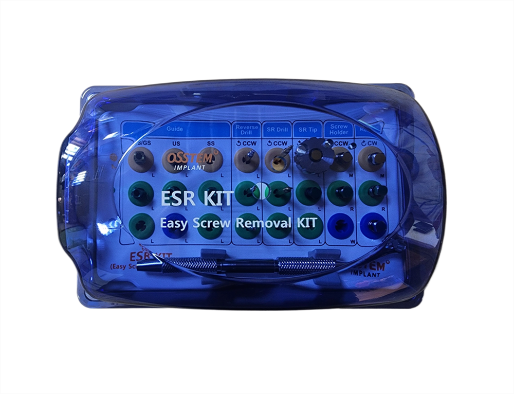 Абатмент и винт абатмента – две наиболее распространенные части имплантата, где может случиться поломка. ESR KIT, набор для удаления винта, - простой в использовании набор инструментов, разработанный специально чтобы помочь стоматологам быстро и эффективно справляться с проблемой удаления сломанного винта или абатмента. Процент успешных операций с помощью набора составляет 90%.