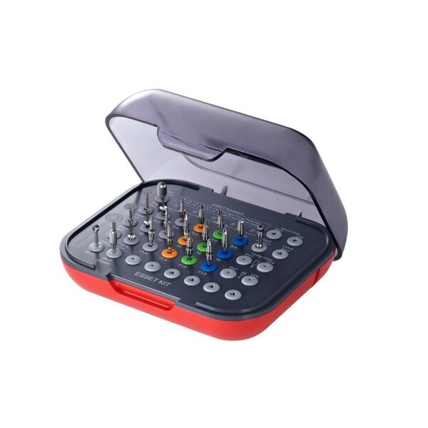 Набор для расщепления гребня Esset kit предназначен для выравнивания альвеолярного гребня и расщепления кости. Более удобная и безопасная альтернатива традиционной методике расщепления и расширения альвеолярного гребня. Компоненты ESSET KIT работают от физиодиспенсера, что значительно сокращает время проведения операции.