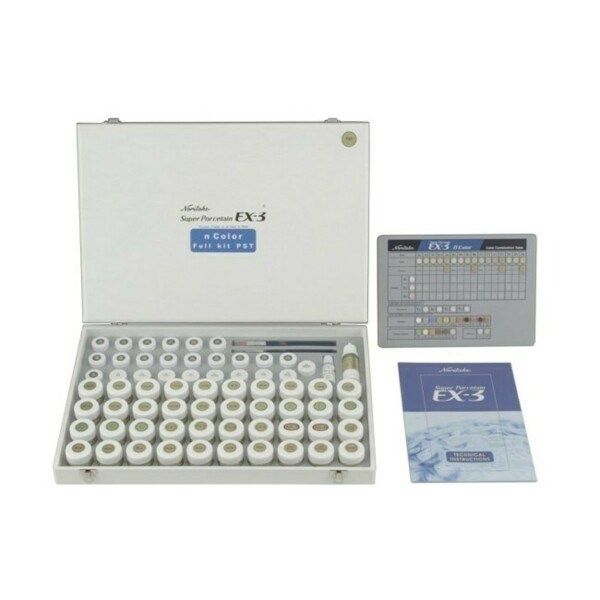 EX-3 Full Kit PST - полный набор фарфора Super Porcleain EX-3 N Color с пастообразным опаком. Включает в себя все существующие оттенки дентинов и опаковых паст групп А, В, С и D, эмали, транспаренты и пришеечные массы для них, фарфоры для коррекции, модификаторы дентинового и опакового слоя, жидкости и кисточки.