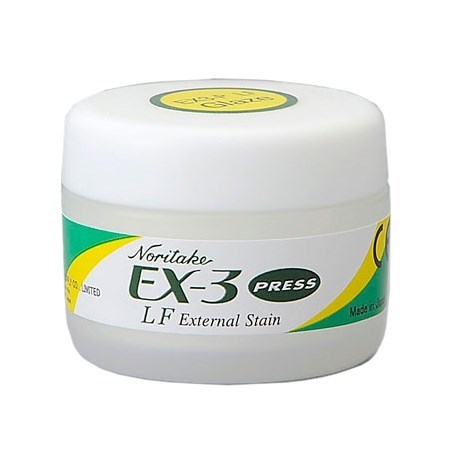 EX-3 Press LF External Stain ES внешние красители для наружной окраски пресскерамики. Внешние красители предназначены исключительно для использования с пресс керамикой ЕХ-3 PRESS Noritake. Их применение даёт возможность воспроизвести большинство сложных и замысловатых объёмных эффектов, наблюдаемых у натуральных зубов.