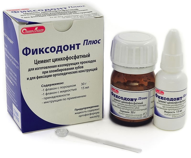 Цемент "ФИКСОДОНТ ПЛЮС" предназначен для фиксации коронок, мостов, фасеток, штифтовых зубов, может применяться как прокладка при пломбировании композитами и амальгамой.