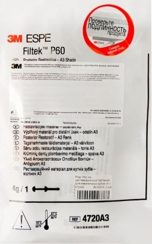 Описание: Filtek P60, оттенок A3, реставрационный материал для жевательных зубов (1 шт, 4г), 4720A3, 3M.