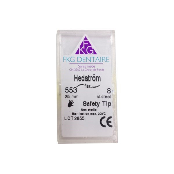 Ручные эндодонтические файлы изготовлены из стали или NiTi стандартных ISO размеров от 6 до 40, имеют неактивный безопасный кончик, который является эксклюзивной разработкой компании FKG, и эргономичную ручку — (SMG). Эргономичную ручку удобнее держать, благодаря увеличенному диаметру. На конце ручки расположен 8-сегментный индикатор кратности использования. После каждого применения на один сегмент наносится засечка, то есть фиксируется информация о количестве циклов использования и стерилизации. Когда все сегменты помечены засечками, инструмент необходимо утилизировать.
