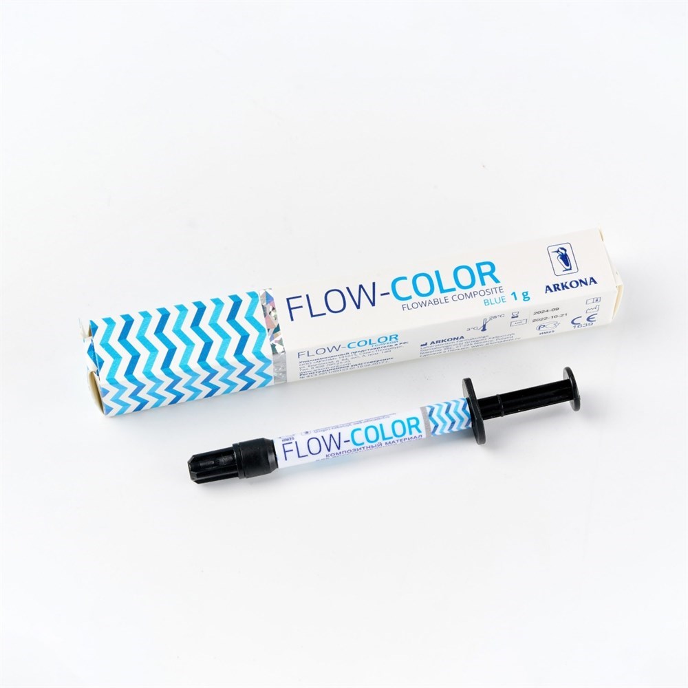 FLOW-COLOR – светоотверждаемый, микрогибридный, цветной композит, голубой, шприц 1 г