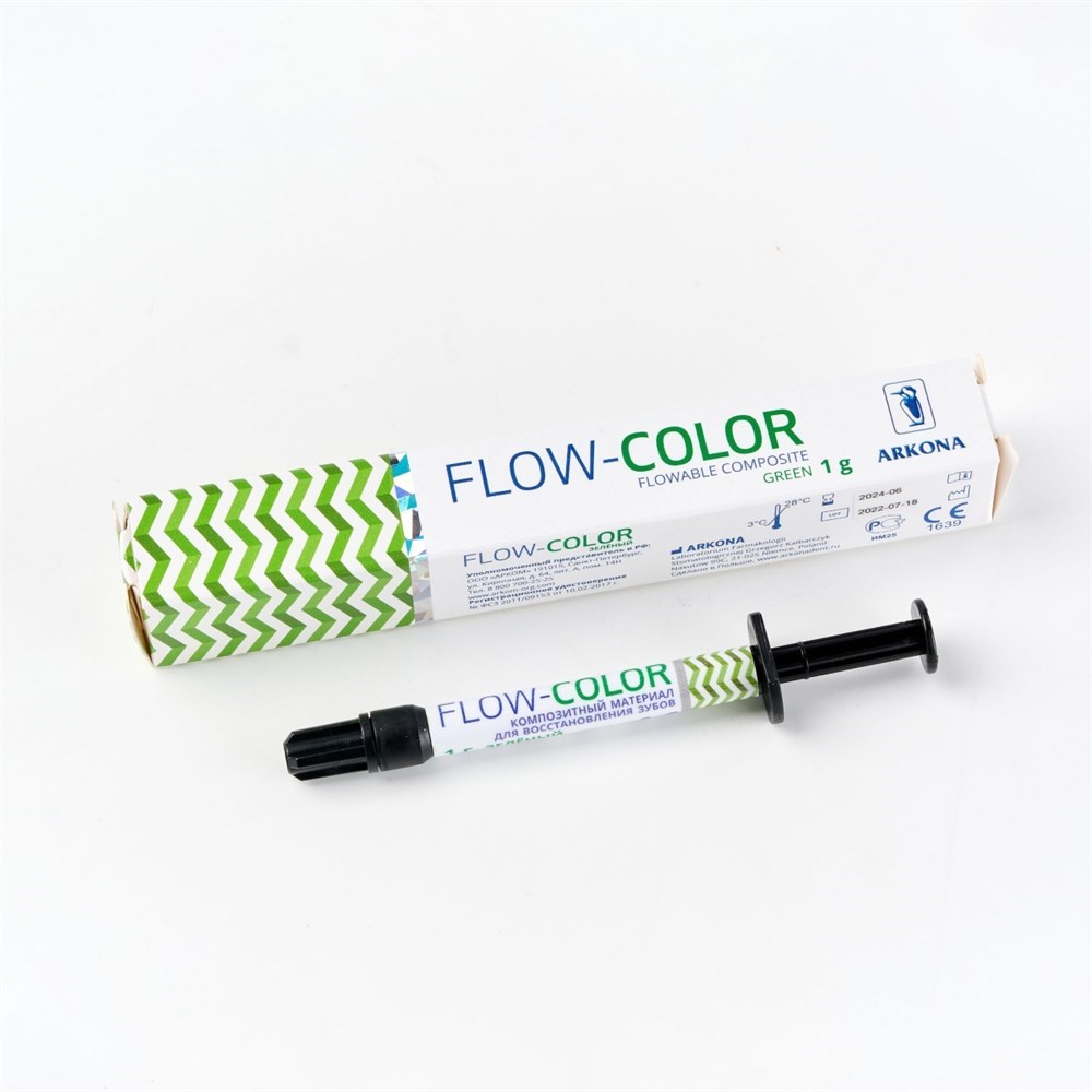 FLOW-COLOR – светоотверждаемый, микрогибридный, цветной композит, зеленый, шприц 1 г