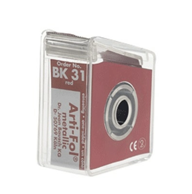 Проверочная фольга Arti-Fol® металлик толщиной 12 мкм, состоит из металлизированной полиэфирной фольги (Shimstock-фольга) толщиной 12 мкм и красящего покрытия с новым составом компонентов, обладает повышенной красящей способностью. Особенно чётко видны контактные пункты на керамических и гладкополированных металлических поверхностях.