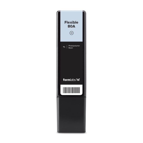 Formlabs Flexible 80A Resin - это самый прочный и мягкий на ощупь материал в библиотеке гибких и эластичных смол с твердостью по Шору 80А. Используется для имитации гибкости резины или ТПУ. Идеально подобраная мягкость и прочность матеиала Flexible 80A Resin позволяет напечатанным изделиям выдерживать изгиб и сжатие даже при повторяющихся циклах.