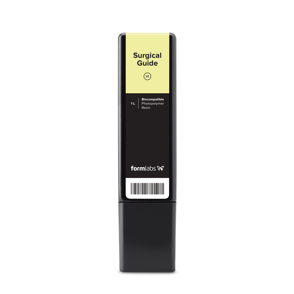 Formlabs Surgical Guide Resin — полимер специально разработанный для нужд стоматологии. Автоклавируемый полимер 1 класса, обладающий полной биосовместимостью и рассчитанный на использование в стоматологии. Полимер предназначен для непосредственного создания шаблонов для хирургического под полный протакол или для пилотного сверления, зубных шин, фиксаторов и многого другого.