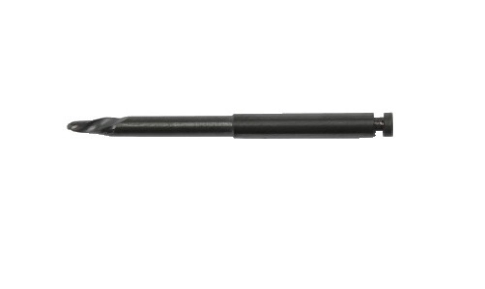 2. Пилотной фрезой через втулку против часовой стрелки высверлить отверстие в торце отломка винта на глубину 1-2 мм (втулка ограничивает максимальную глубину погружения фрезы до 4мм). Рекомендуемая скорость вращения пилотной фрезы 1200-1400 об/мин.