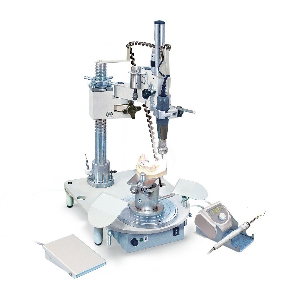 Универсальное фрезерно-параллелометрическое устройство для анализа, разметки, сверлильно-фрезерных работ, выполнения всех видов измерительных и моделировочных работ на зуботехнических моделях и каркасах.