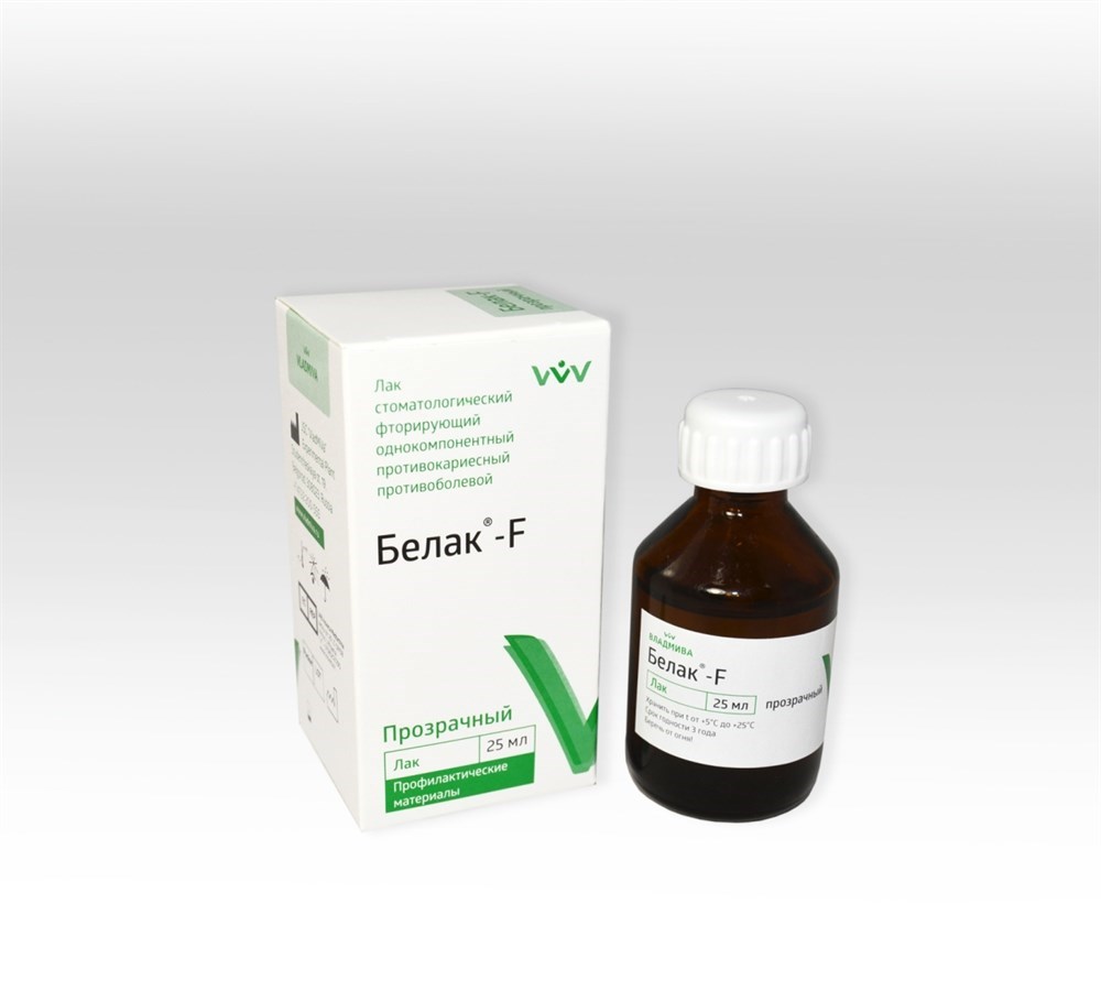 Белак-F прозрачный – прозрачный фторирующий лак. В его состав входят природный пленкообразователь, соединение фтора нового поколения (аминофторид), антисептический компонент и растворитель.
