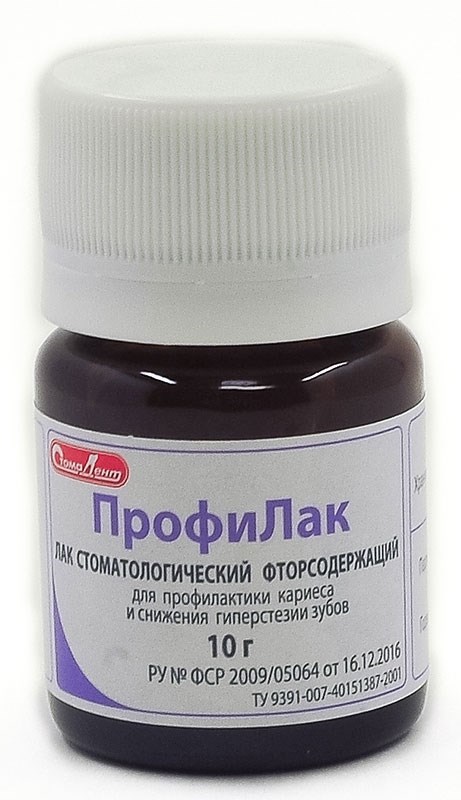 НАЗНАЧЕНИЕ. "ПРОФИЛАК" представляет собой стоматологический фторсодержащий материал. Применяется как профилактическое средство при прогрессивном праксимальном кариесе, при гиперестезии зубов, при некариозных поражениях зубов, при обработке зубов под искусственные коронки, как парадонтальная повязка после проведения профессиональной гигиены полости рта, в детской стоматологии при профилактике кариеса с момента прорезывания зубов.