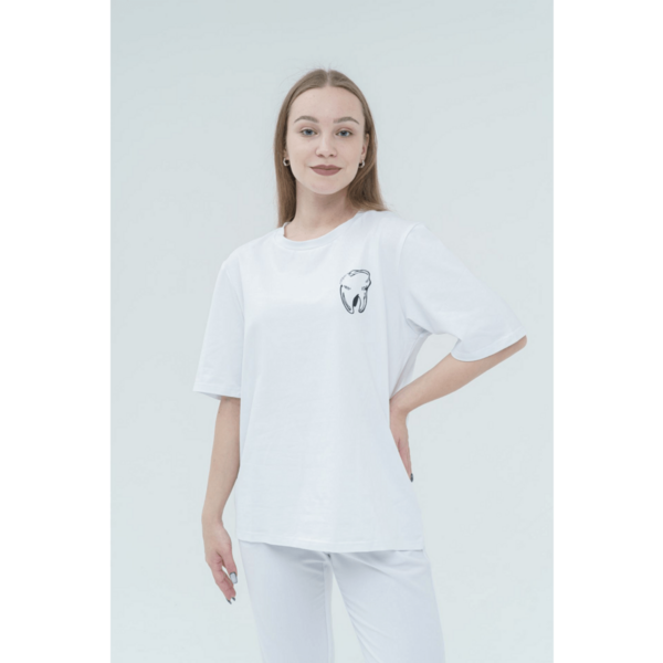 Базовая женская футболка с принтом «Зубик» с коротким рукавом от бренда Тезис имеет прямой крой и круглый вырез. Благодаря свободному фасону изделие комфортно в носке и не сковывает движения. Доступна в разных цветах.