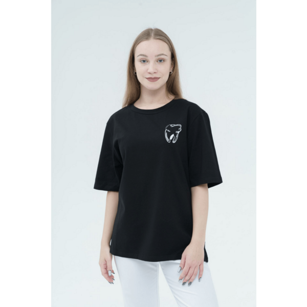 Базовая женская футболка с принтом «Зубик» с коротким рукавом от бренда Тезис имеет прямой крой и круглый вырез. Благодаря свободному фасону изделие комфортно в носке и не сковывает движения. Доступна в разных цветах.