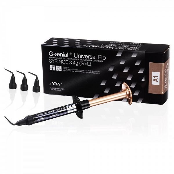 GC G-aenial Universal Flo обладает уникальной комбинацией таких свойств, как повышенная текучесть, позволяющая вносить материал в полость удобно и просто. Великолепные физические характеристики, гарантирующие прочность и долговечность реставраций. Является альтернативой для многих сложных случаев, когда Вы не хотите жертвовать ни эффективным внесением материала, ни эстетикой, ни прочностными характеристиками композита.