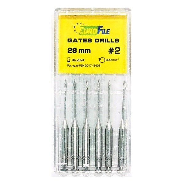 Gates Drills - дрильборы машинные, для расширения коронковой трети канала, 28 мм, размер 2, сталь, 6 шт
