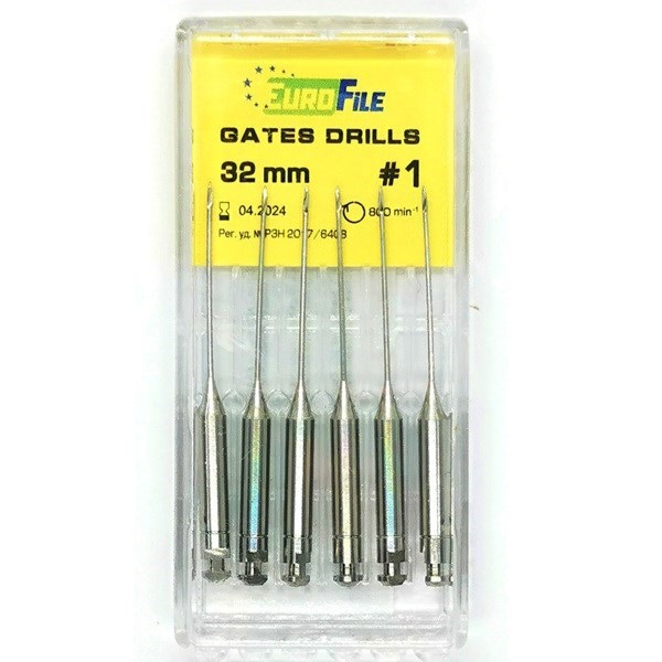 Gates Drills - дрильборы машинные, для расширения коронковой трети канала, 32 мм, размер 1, сталь, 6 шт