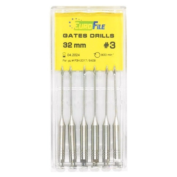 Gates Drills - дрильборы машинные, для расширения коронковой трети канала, 32 мм, размер 3, сталь, 6 шт