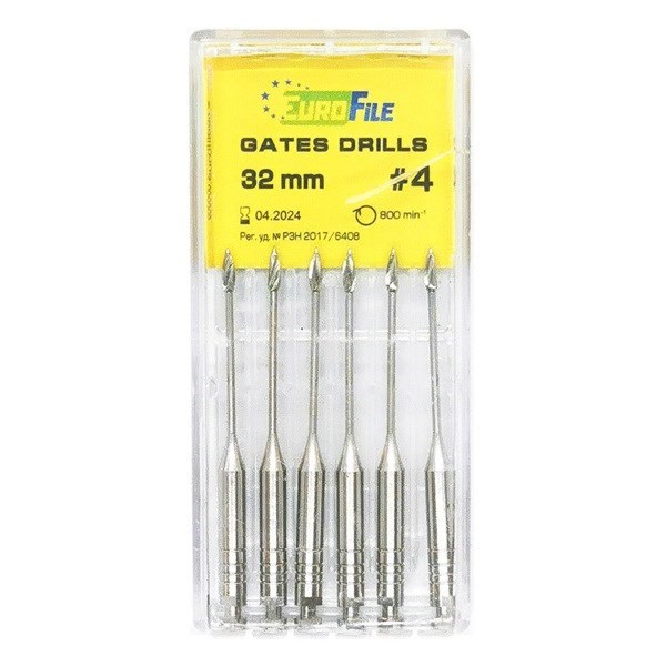 Gates Drills - дрильборы машинные, для расширения коронковой трети канала, 32 мм, размер 4, сталь, 6 шт