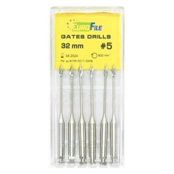 Gates Drills - дрильборы машинные, для расширения коронковой трети канала, 32 мм, размер 5, сталь, 6 шт