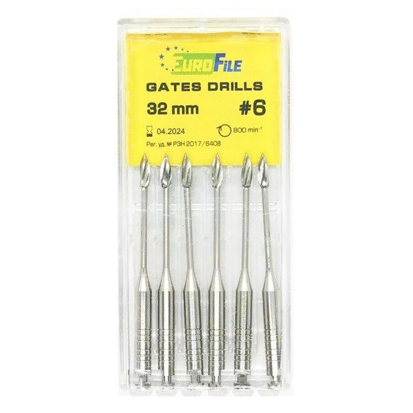 Gates Drills - дрильборы машинные, для расширения коронковой трети канала, 32 мм, размер 6, сталь, 6 шт