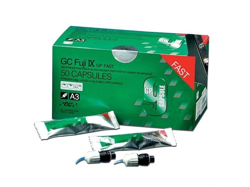 ДЖИ СИ Фуджи IX ДЖИ ПИ. Стеклоиономерный реставрационный цемент пакуемой вязкости с традиционным временем отверждения. Материал в капсулах (упаковка 50 шт).