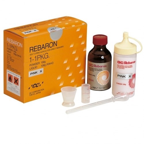 Описание: GC Rebaron, 1-1 pkg, GCДЖИ СИ Ребарон - Акриловая пластмасса для жесткой долгосрочной перебазировки частичных и полных съёмных протезов прямым методом.