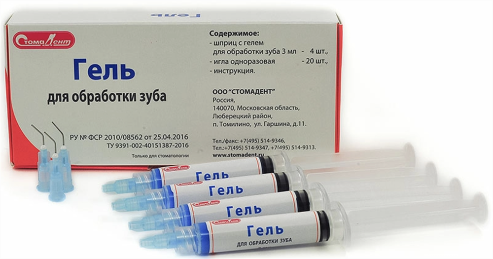НАЗНАЧЕНИЕ. Гель для обработки зуба (травления эмали и дентина) предназначен для протравливания эмали и дентина с целью создания микроретенционных пунктов и увеличения адгезии при работе с композитными пломбировочными материалами.