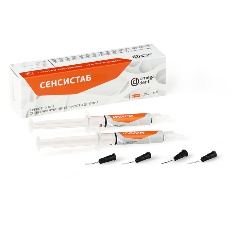 Гель Сенсистаб для снижения чувствительности дентина, 2 шприца по 2,5 мл + 20 канюль.