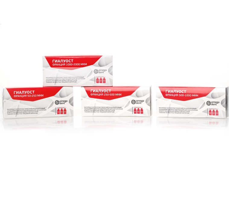 Препараты серии "Гиалуост" могут применяться в качестве остеопластического материала, оптимизирующего регенерацию костной ткани, в хирургической стоматологии, а также в травматологии и ортопедии. "Гиалуост" по гранулометрическому составу разделен на фракции: