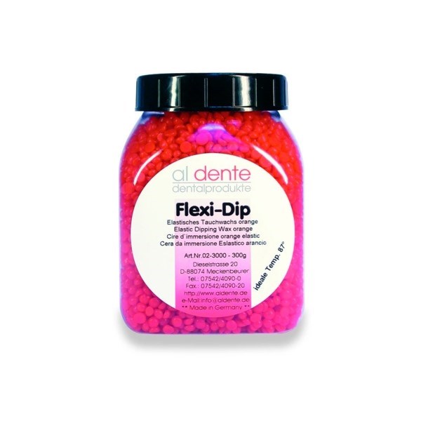 Эластичный погружной воск Flexi-Dip Elastic Dipping Wax используется для точной подгонки восковых колпачков. Высокая эластичность воска предотвращает длительную деформацию колпачка при снятии его со штампа, тем самым, гарантируется легкая адаптация и наилучшая точность посадки отлитых коронок. По своим физическим свойствам этот воск почти соответствует свойствам термоформованного синтетического колпачка. Идеальная температура погружения воска ~87°C приводит к толщине стенки колпачка ~0,35-0,4 мм.