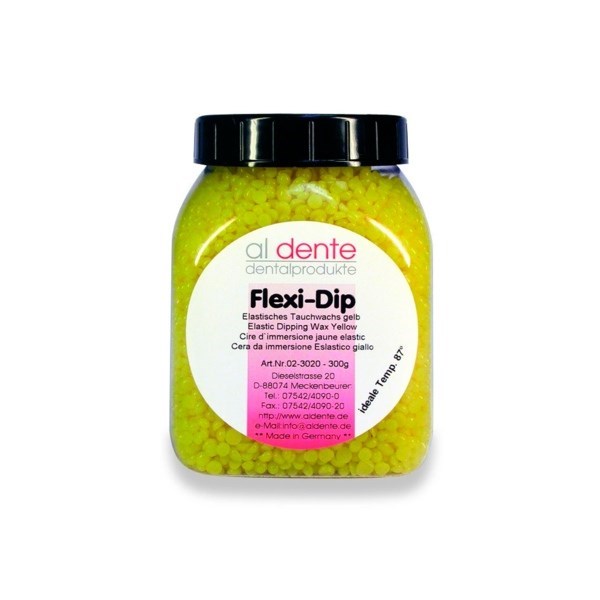 Эластичный погружной воск Flexi-Dip Elastic Dipping Wax используется для точной подгонки восковых колпачков. Высокая эластичность воска предотвращает длительную деформацию колпачка при снятии его со штампа, тем самым, гарантируется легкая адаптация и наилучшая точность посадки отлитых коронок. По своим физическим свойствам этот воск почти соответствует свойствам термоформованного синтетического колпачка. Идеальная температура погружения воска ~87°C приводит к толщине стенки колпачка ~0,35-0,4 мм.
