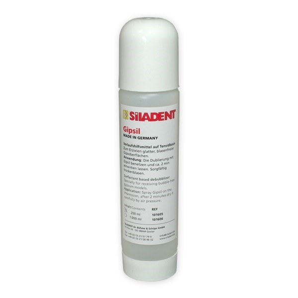Жидкость Gipsil применяется для смачивания поверхности силиконовых и полиэфирных оттисков. Устраняет водоотталкивающий эффект. Значительно улучшает связку между оттиском и формомассой. Поверхность отливок отличается гладкостью и отсутствием пор.