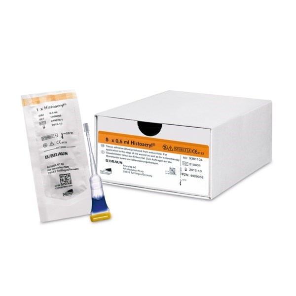Гистоакрил — это тканевый клей от компании BBraun, который используется в дополнение к традиционному ушиванию при помощи нитей. Клей состоит из мономера n-бутил-2-цианакрилат и при контакте с тканевой жидкостью быстро полимеризуются.