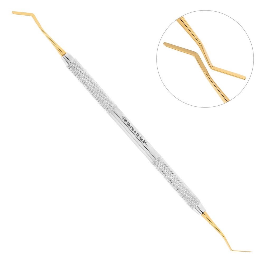 Для нанесения и уплотнения пломбировочного материала, конденсации его к стенкам кариозной полости, а также для формирования пломб применяется гладилка с нитрид титановым покрытием производства компании HLW Dental Instruments.