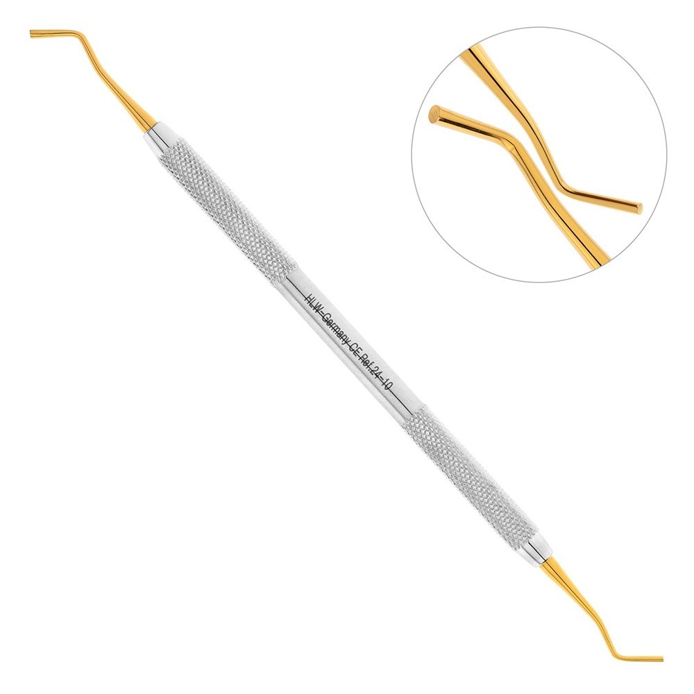 Компанией HLW Dental Instruments изготовлен штопфер (гладилка) с нитрид титановым покрытием. Инструмент предназначен для нанесения в обработанные кариозные полости и уплотнения пломбировочного материала, конденсации его к стенкам полости, а также для формирования пломб.