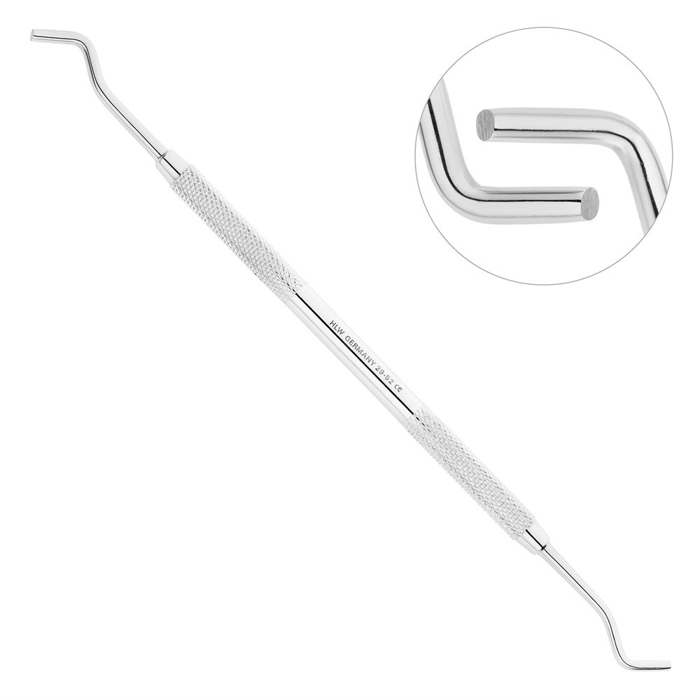 Для послойного внесения пломбировочного материала в обработанную кариозную полость изготовлен стоматологический штопфер (гладилка) немецкого бренда-производителя HLW Dental Instruments.